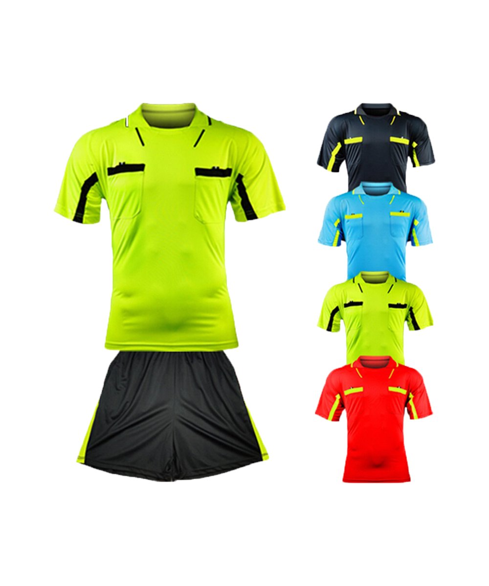This soccer referee jersey gives you the professional impression in your matches. Designed for your comfort and maximum performance. Microfiber fabric draws moisture away from the body to help keep you Feel confident wearing our jerseys. Colors are designed to match current uniforms making you look like a professional team. Extra jersey body length permits a secure tuck that is maintained throughout your matches. Features a stripe design on the front and back, with sleeve and back collar markings that also match. Tuck your cards, writing utensil, booklets, or match documents in two internal chest pockets. Pull tabs with Velcro fasteners help you gain quick access and keep contents inside. The zippered placket and collar fits nicely against the neck and permits a custom fit.